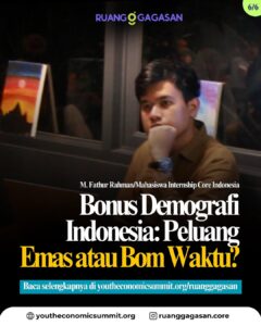 Baca selengkapnya artikel M. Fathur Rahman/Mahasiswa Internship Core Indonesia “Bonus Demografi Indonesia: Peluang Emas atau Bom Waktu?” di https://www.youtheconomicsummit.org/ruang-gagasan atau klik link di Bio